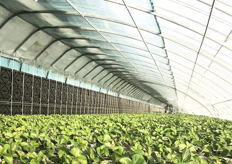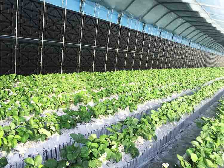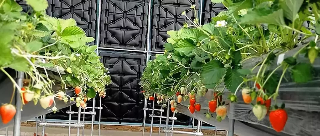 為了達到合理蓄熱的目的,日光溫室蓄熱系統(tǒng)也經(jīng)歷了土墻、磚墻墻體保溫到相變材料的不斷更新。受傳統(tǒng)日光溫室蓄熱材料粘土或磚本身的物理性質(zhì)的限制,能達到的蓄熱量有限。理論上,選用比熱容更高的水可能會收獲更多蓄熱量。粘土或磚的比熱容分別僅為水的1/3和1/4,也就是說單位質(zhì)量的水蓄熱內(nèi)外雙保溫裝配式日光溫室蓄熱體每升高或降低1℃可以吸收或放出的熱量是土墻或磚墻3~4倍。實踐證明,水蓄熱墻體的蓄熱能力顯著強于土墻或磚墻。崔世茂教授介紹說,在水蓄熱內(nèi)外雙保溫裝配式日光溫室中,水箱墻體蓄熱方面有明顯創(chuàng)新,蓄熱技術(shù)主要是利用太陽能白天照射加溫水箱,晚上通過水箱持續(xù)放熱保持溫室內(nèi)溫度可達到6 ℃以上(同期室外氣溫-30 ℃),夜間增溫效果顯著,這樣就能夠保證溫室中越冬生產(chǎn)栽培的草莓和番茄可以正常生長,產(chǎn)量高、品質(zhì)好!