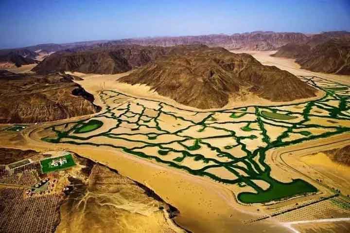 這片位于約旦于瓦迪拉姆沙漠中部的拉姆農場,占地2000公頃。瓦迪拉姆有壯觀的沙漠景觀,又被稱作“月亮谷”,因為它像月球表面一樣寧靜沉寂。這里是典型的純沙沙漠,風化的巨大巖石如同城堡。然而在這里卻一直在開展農業項目,拉姆農場是這其中比較成功的一個。